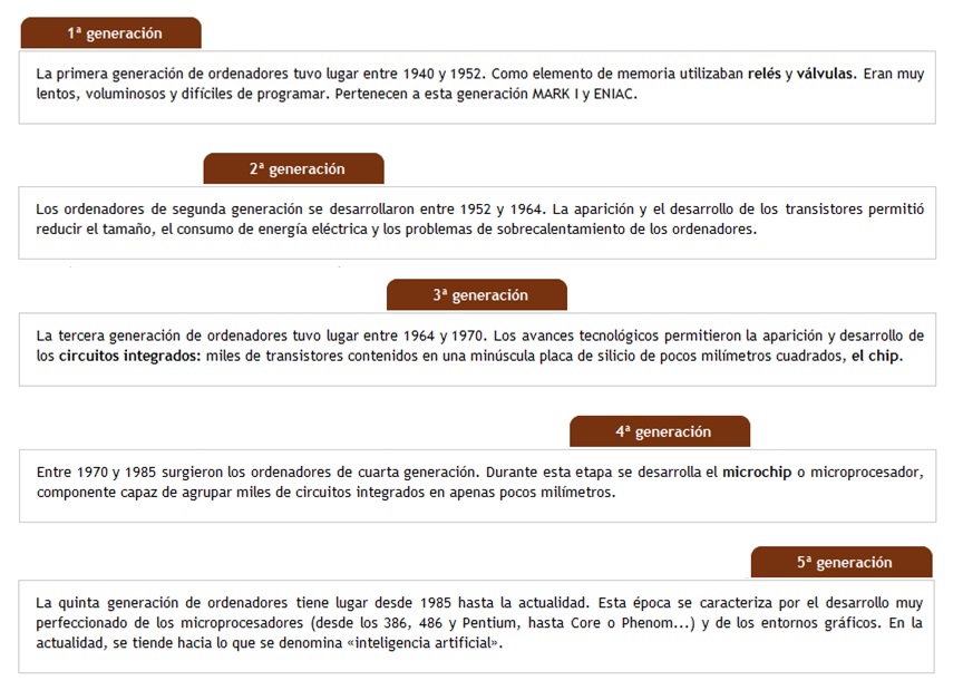 desarrollo y la evolución de los ordenadores. Los técnicos los han subdividido