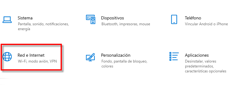 paso que vamos a dar es ir a Menú de inicio, Configuración, Red