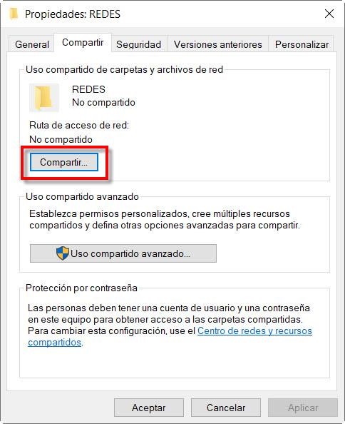 trabajando antes, abajo tenemos el botón Uso compartido avanzado el cual