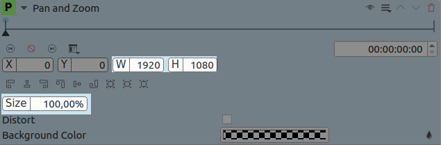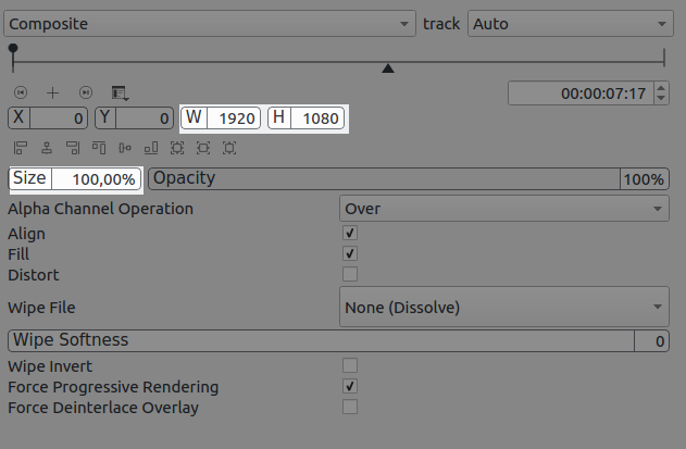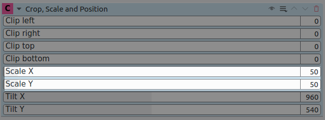 el clip de vídeo, definiendo su posición X y su posición Y: