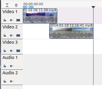 en la pista de vídeo 1, y el segundo en la 2, de manera que se solapen