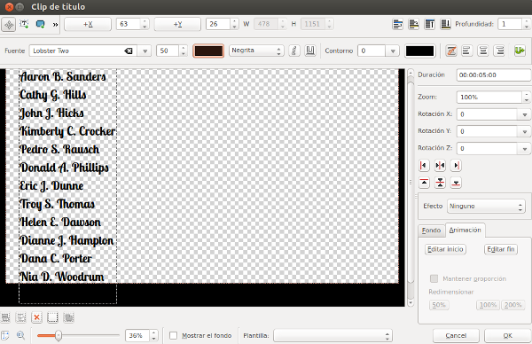 transición => (Elegir la transición deseada). En este caso hemos