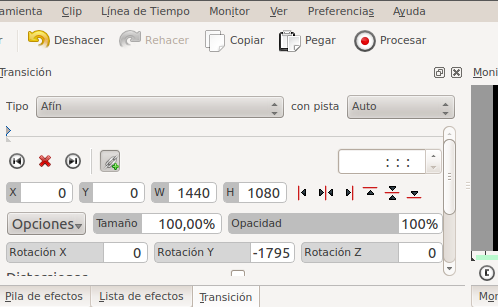 transición, permite combinar varias pistas de vídeo y hacer efectos