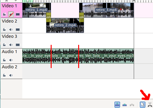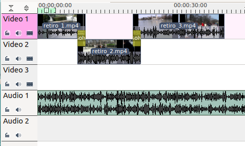 a hacer un montaje de tres clips de vídeo (retiro_1, retiro_2 y