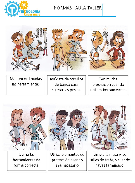 de las normas de seguridad del aula-taller de tecnología, parecido a los de las obras.