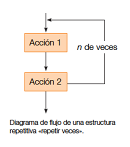 a) Estructura repetitiva "repetir n veces". Una acción o conjunto de acciones se repiten un cierto número de veces.