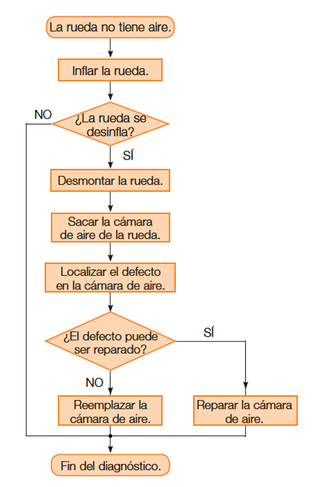 agoritmo que se tendría que seguir para reparar el neumático de una bicicleta.