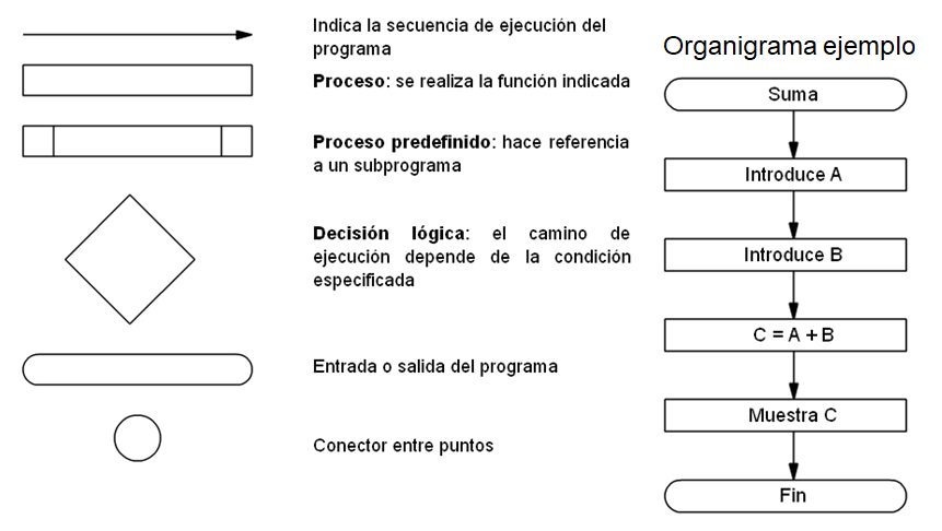 organigrama donde introduzcamos dos números A y B, los sume y nos muestre el
