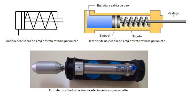 En el estado de reposo, el cilindro se encuentra retraído. Cuando se activa