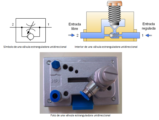 La válvula estranguladora unidireccional de caudal se utiliza para hacer