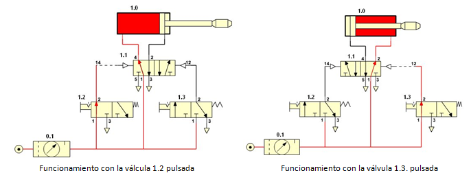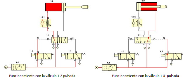 cilindro. Si no están pulsadas ninguna de las dos, y pulsamos la válvula 1.3,