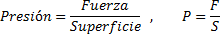 entre la fuerza ejercida sobre la superficie de un cuerpo.