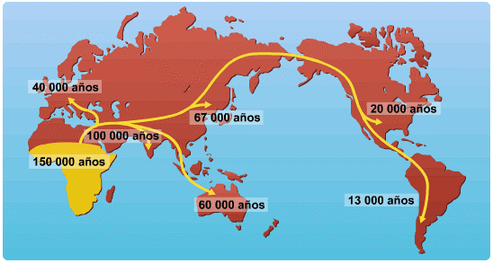 nos fuimos extendiendo por todo el planeta. Primero hacia Asia (hace unos 100
